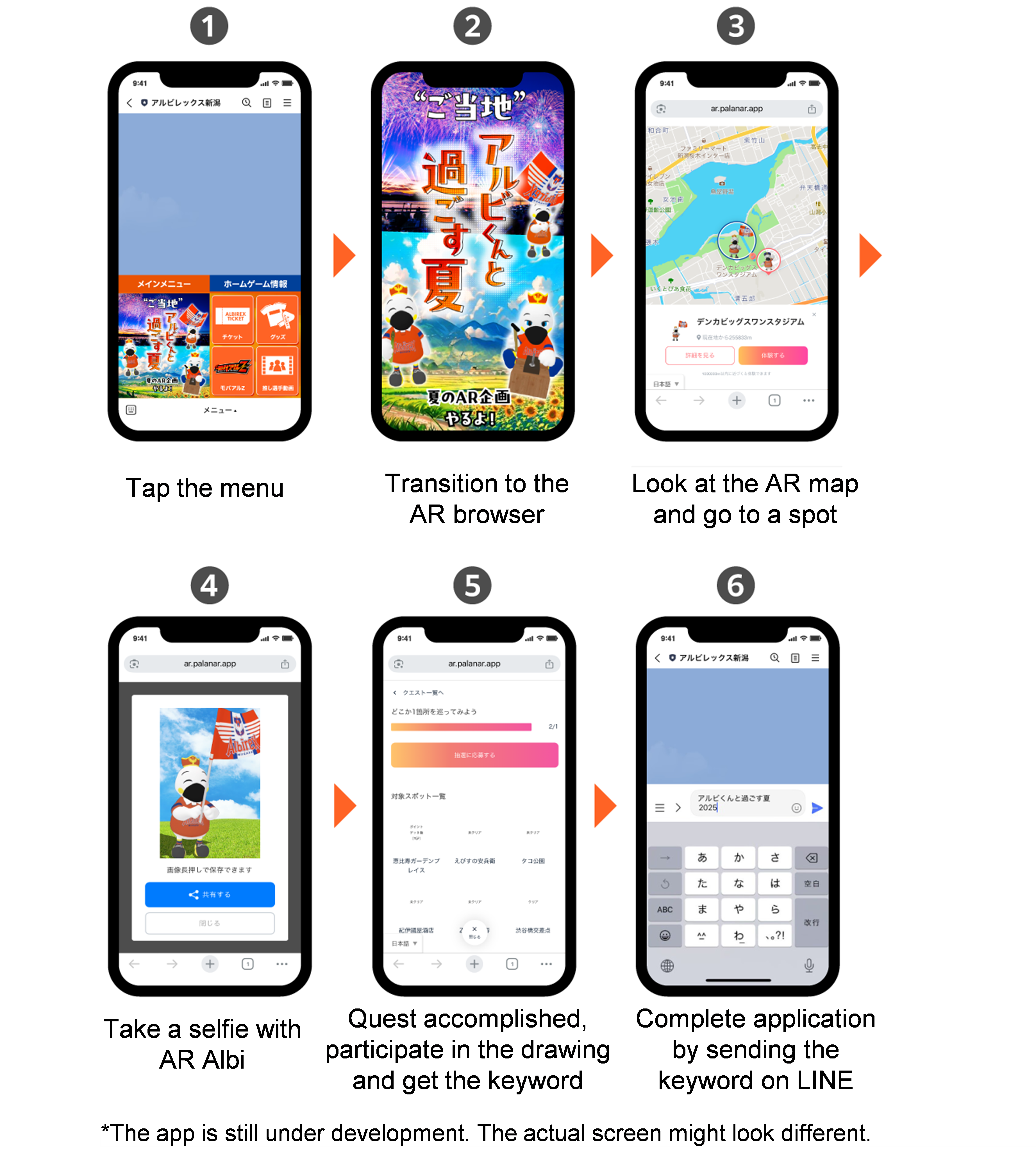 “A Summer with ‘Localized’ Albi” is a stamp rally campaign that encourages participants to visit as many specified sites as possible, where they can collect stamps by activating AR content on the official LINE account of Albirex Niigata. Participants can win fancy prizes in a ballot, depending on the number of stamps collected.