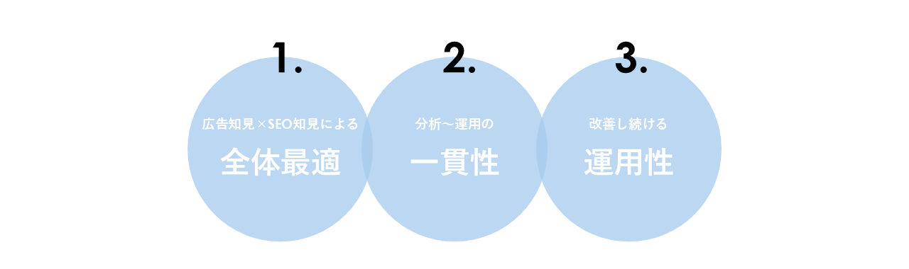 LPや特定のWebページにとどまらず、ユーザーのタッチポイント全体の最適化を実現します。Hakuhodo DY ONEで長年蓄積している広告とSEOの知見を掛け合わせて設計・運用へ組み込みます。